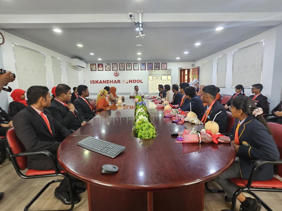 އެކްސްޗޭންޖް ޕްރޮގްރާމުގައި ބައިވެރިވާ އަކާޝް އިންޓަރނޭޝަނަލް ސްކޫލްގެ ދަރިވަރުން އިސްކަންދަރު ސްކޫލަށް އިއްޔެ ޒިޔާރަތް ކުރިއެވެ. އެ ސްކޫލުން އެ ދަރިވަރުންނަށް ހޫނު މަރުޙަބާއެއް ވަނީ ކިޔާފައެވެ.