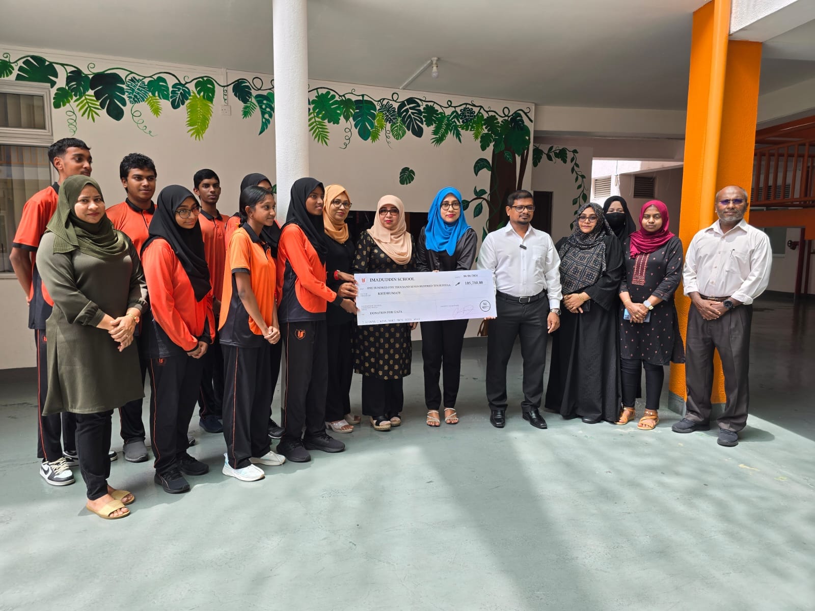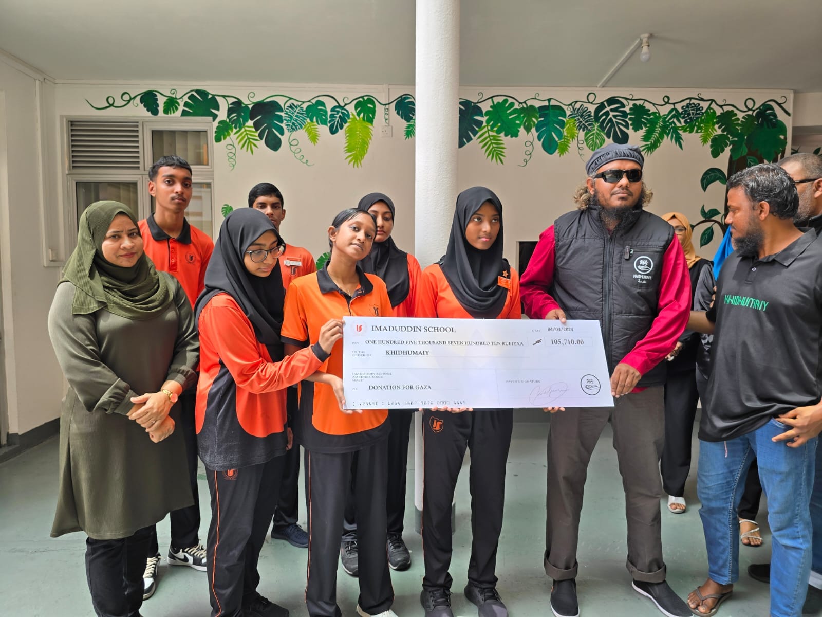 ޣައްޒާއަށް އެހީވާ ފަންޑަށް އިމާދުއްދީން ސްކޫލުން 105,710 ރުފިޔާ ހަދިޔާ ކޮށްފިއެވެ. މިއީ އެ ސްކޫލުގެ ދަރިވަރުންނާއި ބެލެނިވެރިންނާއި މުވައްޒަފުންގެ ބައިވެރިވުމާއެކު ހުޅުވި ފަންޑްރައިޒިންގ ހަރަކާތުން ލިބުނު ފައިސާއެވެ.