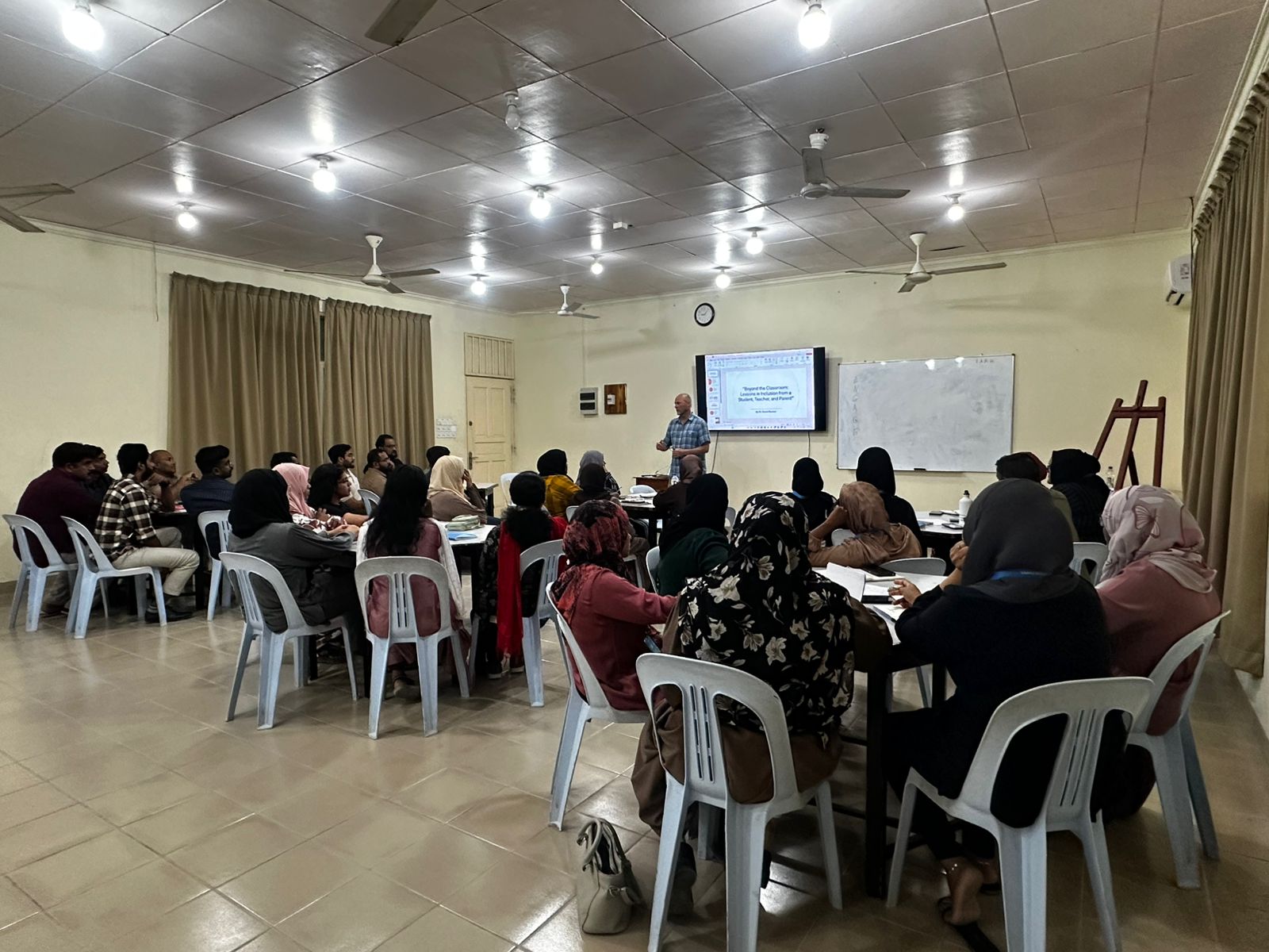 ސެޝަންގައި ކުރިއަށް ގެންދިޔަ މަޝްވަރާގައި ކ. އޭއީސީގެ މުދައްރިސުން ޢަމަލީގޮތުން ބައިވެރިވެ، އެބޭފުޅުންގެ އަމިއްލަ ކްލާސްރޫމްތަކުން ލިބިފައިވާ ތަޖުރިބާތައް ހިއްސާކުރެއްވިއެވެ. އަދި އިންކްލޫސިވް އުސޫލުތައް އެބޭފުޅުންގެ ސްކޫލް މުޖުތަމަޢުގައި ތަރުތީބުކުރެވިދާނެ ގޮތްތަކާ މެދު ވިސްނުން ގެންގުޅުއްވިއެވެ.