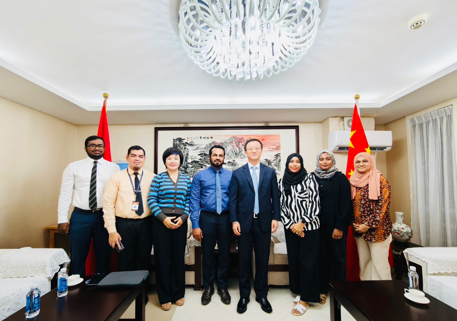 މި ދަތުރުގައި ބައިވެރިވާ ޓީމުގައި ހިމެނެނީ ޕްރައިވެޓް ތިން ސްކޫލާއި ސަރުކާރުގެ ތިން ސްކޫލާއި ބައެއް ކައުންސިލްތަކުން ބައިވެރިވާ ދިހަ ބޭފުޅުންނެވެ. ފުރުމުގެ ކުރިން، ދިވެހިރާއްޖެއަށް ކަނޑައަޅުއްވާފައި ހުންނަވާ ޗައިނާގެ ސަފީރު އެކްސެލެންސީ މިސްޓަރ ކޮންގ ޝިއަންހުއާއާ މި ވަފުދުގެ ބޭފުޅުން އޮކްޓޯބަރު 14 ވަނަ ދުވަހުގެ ހެނދުނު ބައްދަލުކުރައްވާފައިވެއެވެ.