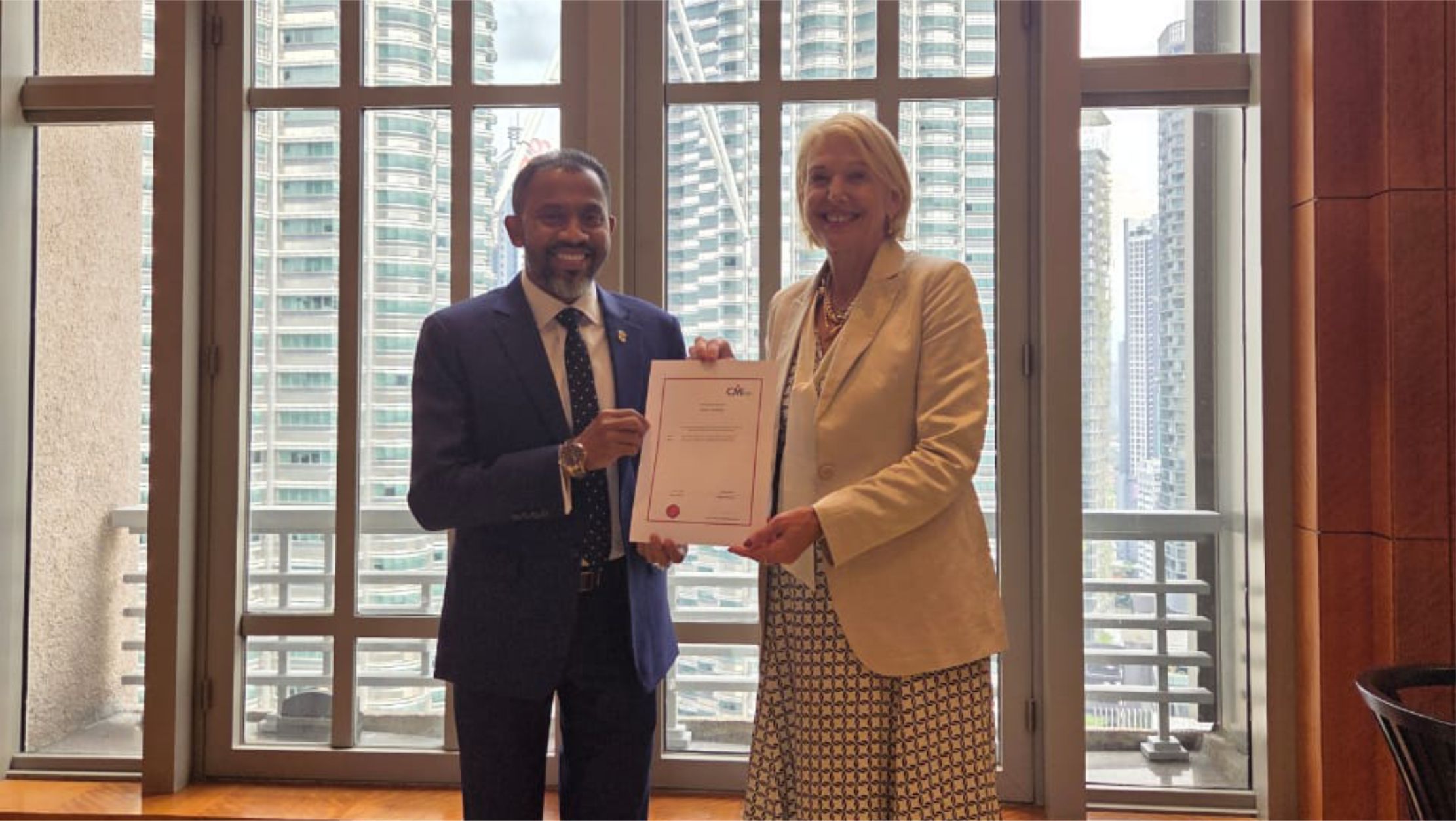 އެވިޑް ކޮލެޖުން މަޢުލޫމާތު ލިބޭގޮތުގައި،  އެކޮލެޖާއި ޗާޓާރޑް މެނޭޖްމެންޓް އިންސްޓިޓިއުޓްއާއި ދެމެދު ވެވުނު އެއްބަސްވުމުގެ ދަށުން، އެވިޑްކޮލެޖަށް އެފަރާތުން ވަނީ ޗާޓާޑް މެނޭޖްމެންޓް އިންސްޓިޓިއުޓް ގެ އިންޓަރނެޝަނަލް އެޕްރޫވްޑް ސެންޓަރެއްގެ ދަރަޖަ ދީފައެވެ.