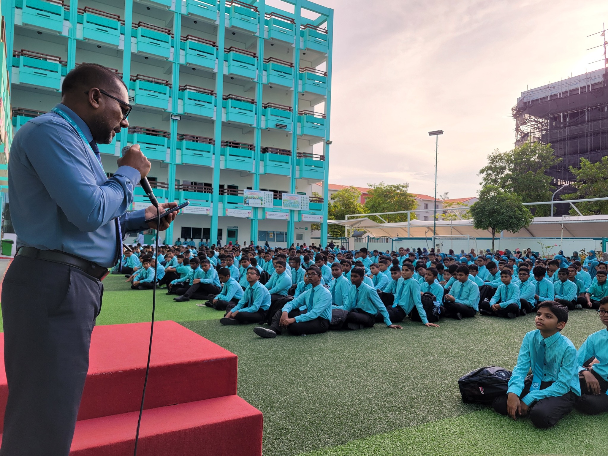 "ސްކޫލްގެ އާބާދީ އިތުރުވި ނަމަވެސް ބެލެނިވެރިންނާ އެކީގައިކުރި މަސައްކަތުން، މިނިސްޓްރީ އޮފް އެޑިޔުކޭޝަނުން ދިން އެހީތެރިކަމާއެކު 10 އަހަރުގެ ތެރޭގައި އެންމެ ރަނގަޅު ސްކޫލްތަކާ އެއްވަރަށް ވަޞީލަތްތައް ޤާއިމްކުރެވިއްޖެ" ސްކޫލުގެ މިހާރުގެ ހާލަތު ނާޒިމް ވިދާޅުވެދެއްވިއެވެ.
