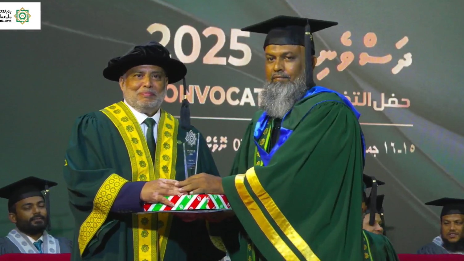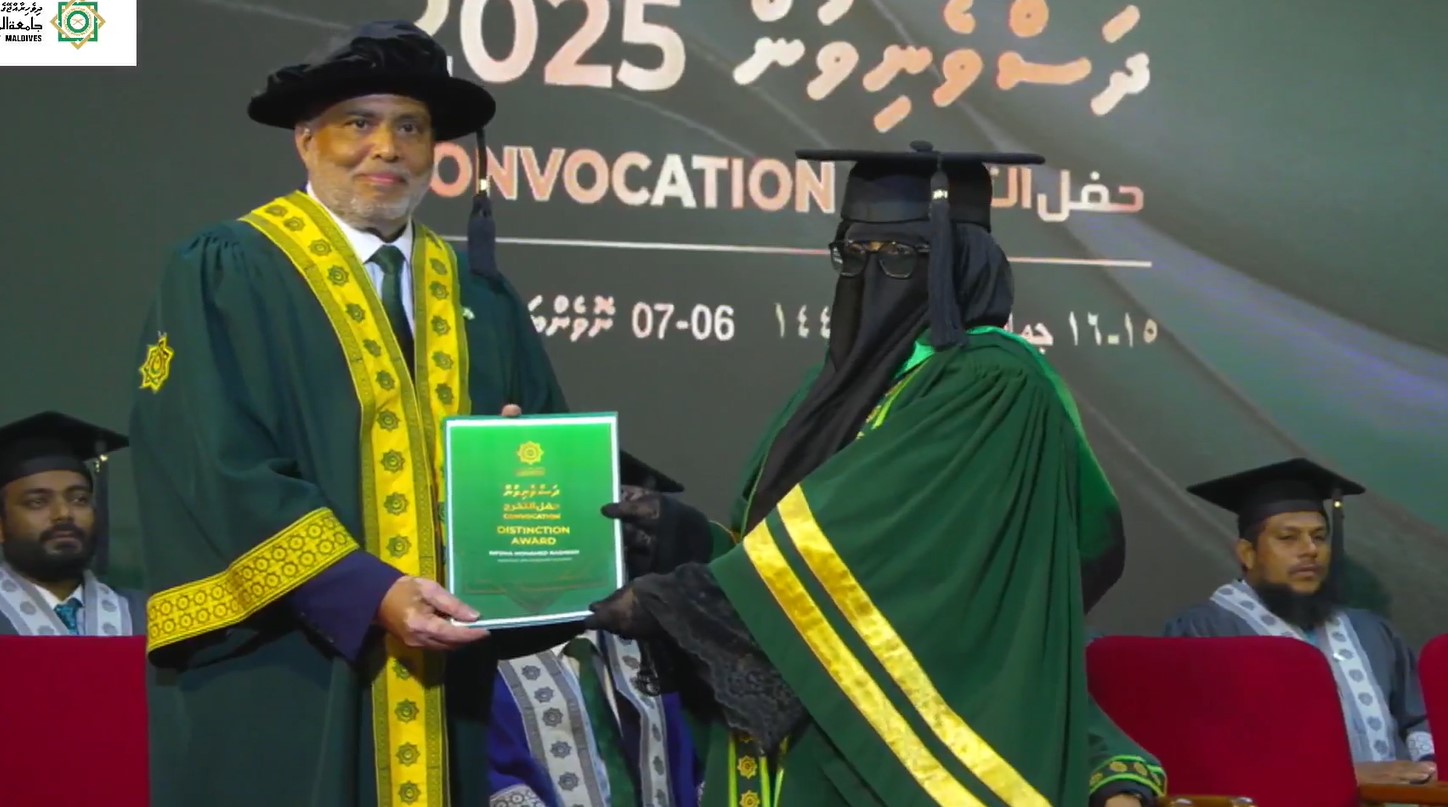 ޑިސްޓިންކްޝަން އެވޯޑް، ހަތަރު ދަރިވަރުންނަށް ލިބުނެވެ. މިއީ، ޔުނިވަރސިޓީން ހިންގާ ޕްރޮގްރާމްތަކުގެ ތެރެއިން މޯލްޑިވްސް ނެޝަނަލް ކޮލިފިކޭޝަން ފްރޭމްވޯކްގެ ލެވެލް 7 (ބެޗްލާރސް ޑިގްރީ) އާއި އެއަށްވުރެ މަތީ ފެންވަރުގެ ކޮންމެ ކޯހެއްގެ ނަތީޖާއަށް ބަލައި، ހުރިހާ މާއްދާއަކުން ހައި ޑިންޓިންކްޝަން ހޯދާ ދަރިވަރުންނަށް ދެވޭ އެވޯޑެކެވެ.